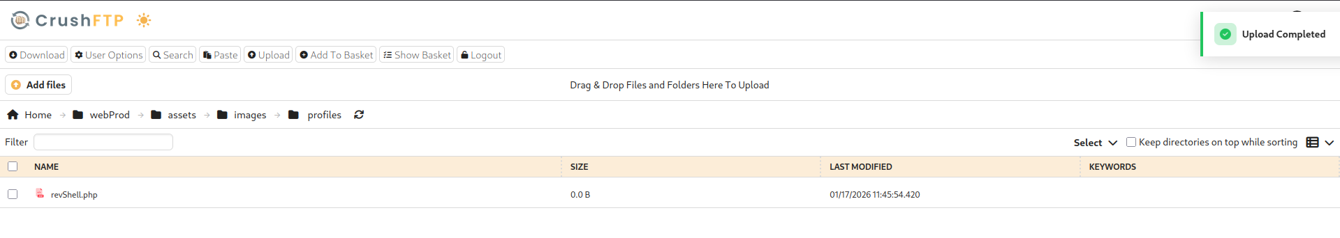 • Login as Ben, Upload shell to webprod/assets/images/profiles