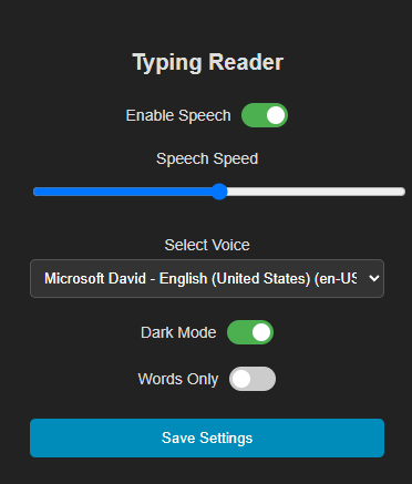 Typing Reader is an accessibility extension that provides real-time speech feedback while typing. As letters are entered, they are read aloud. When a full word is typed, the whole word is read aloud.
